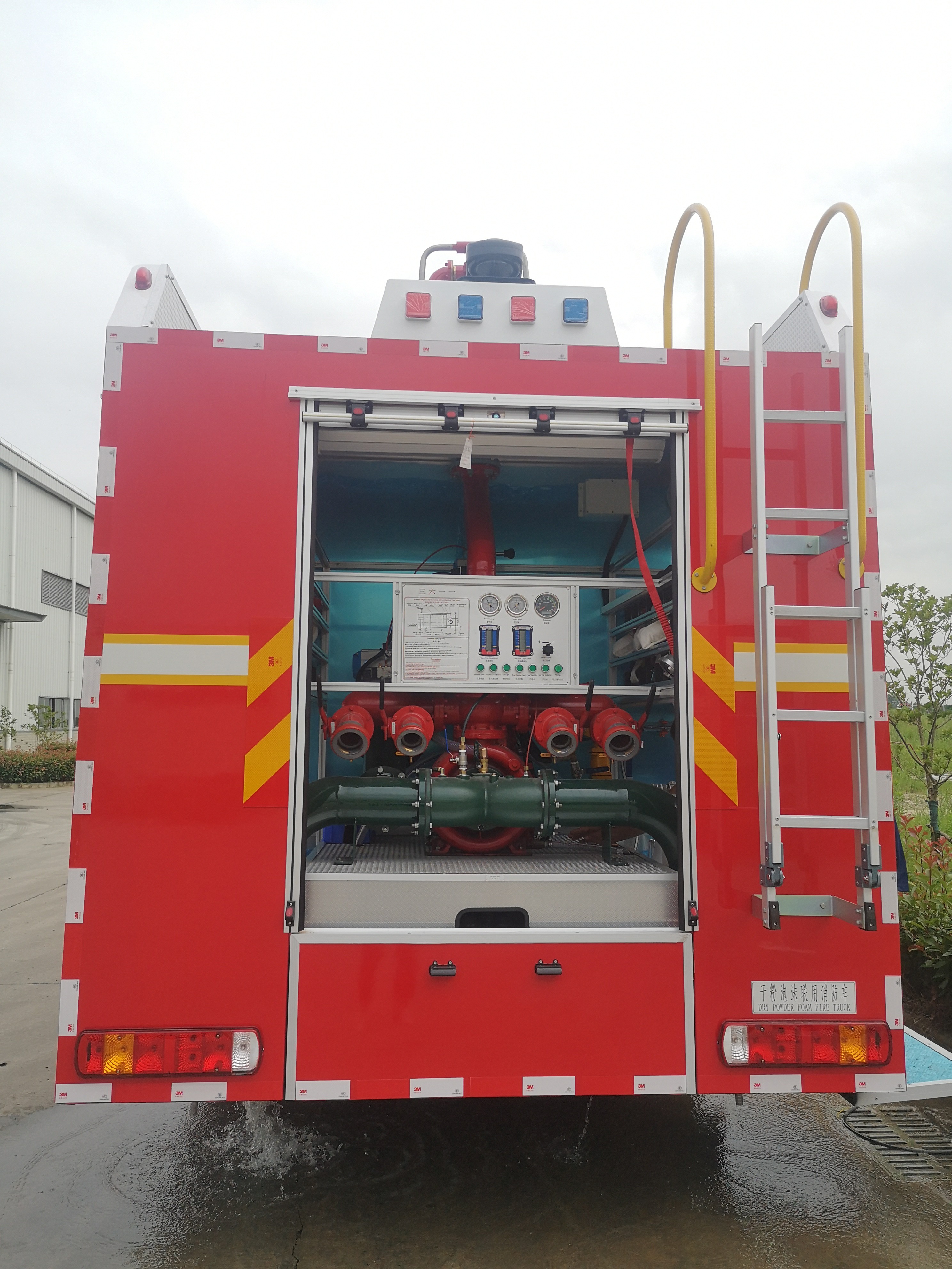 O veículo é composto por sala de tripulação, compartimento de armazenamento, tanque, casa de bombas, bomba de incêndio, tomada de força, tubulação de entrada e saída, monitor de incêndio, etc.