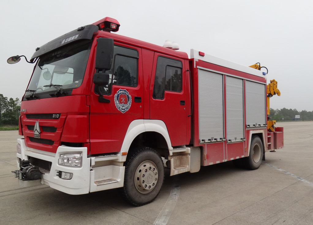 Caminhão leve de resgate SINOTRUK, carro de bombeiros moderno 4x2 com guindaste de 5 toneladas